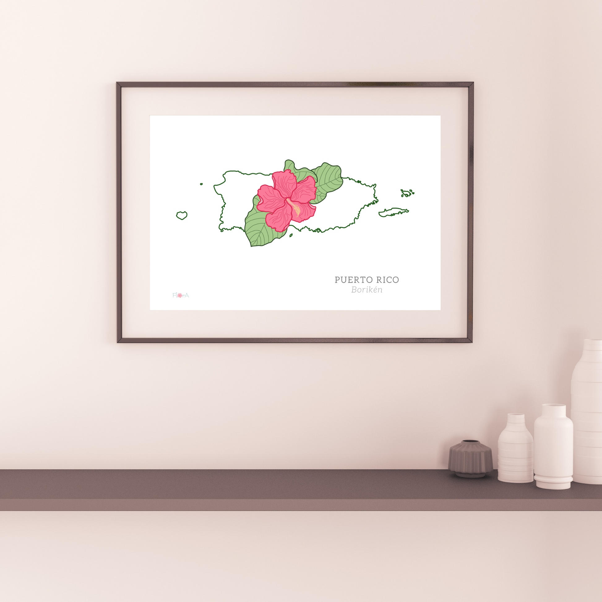 Ilustración con nuestra flor nacional, La Maga junto a nuestro archipiélago de islas.